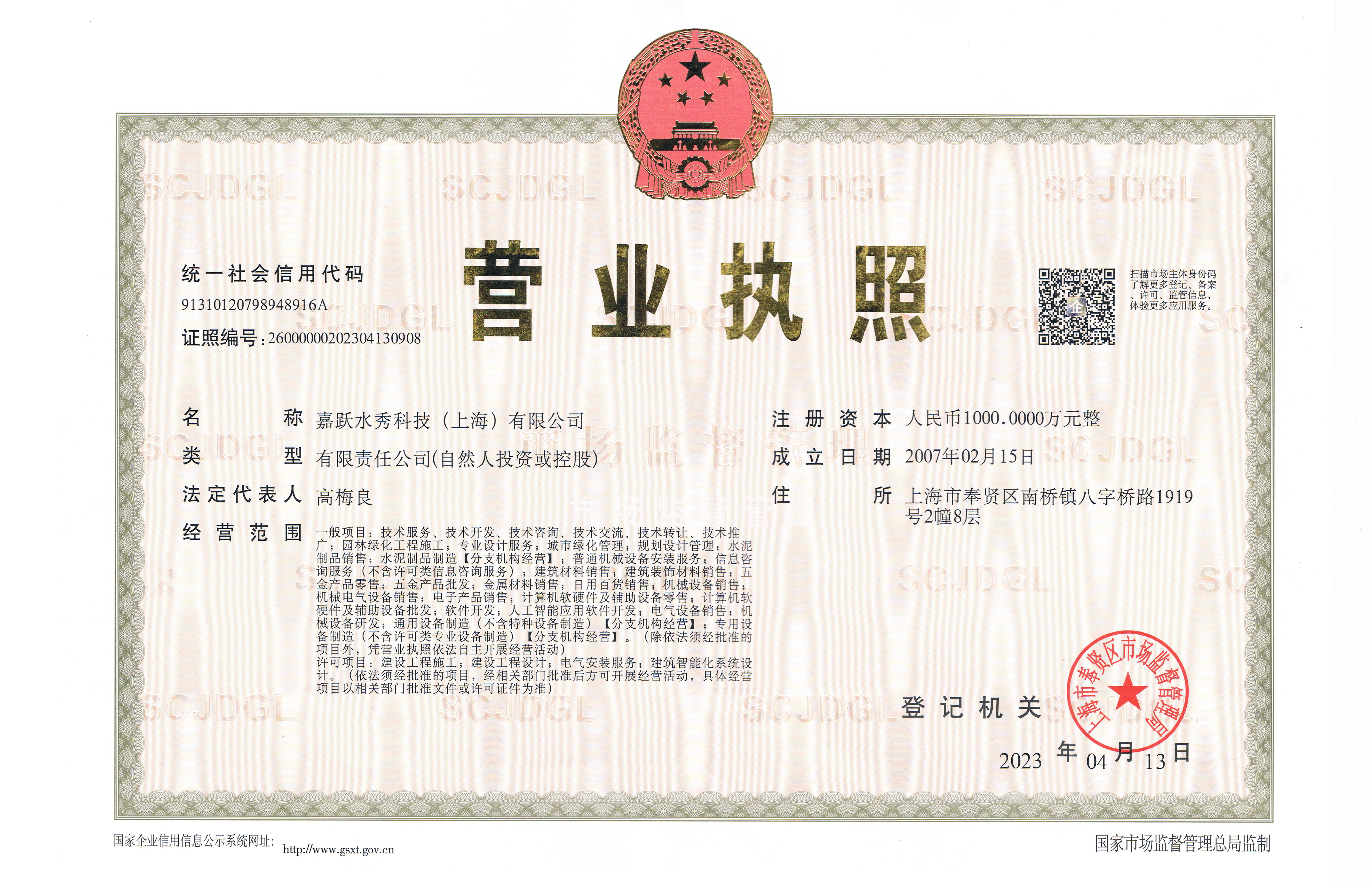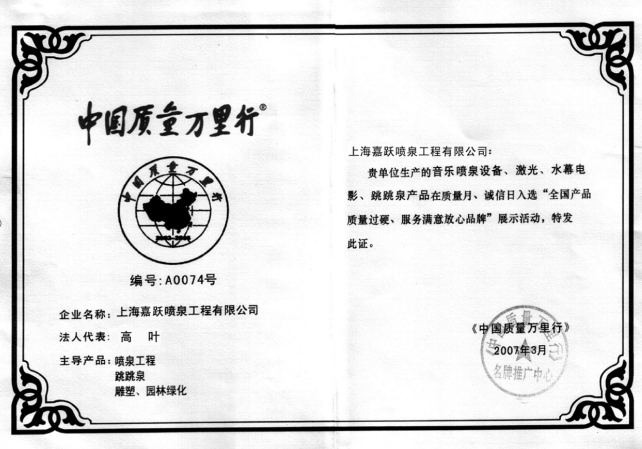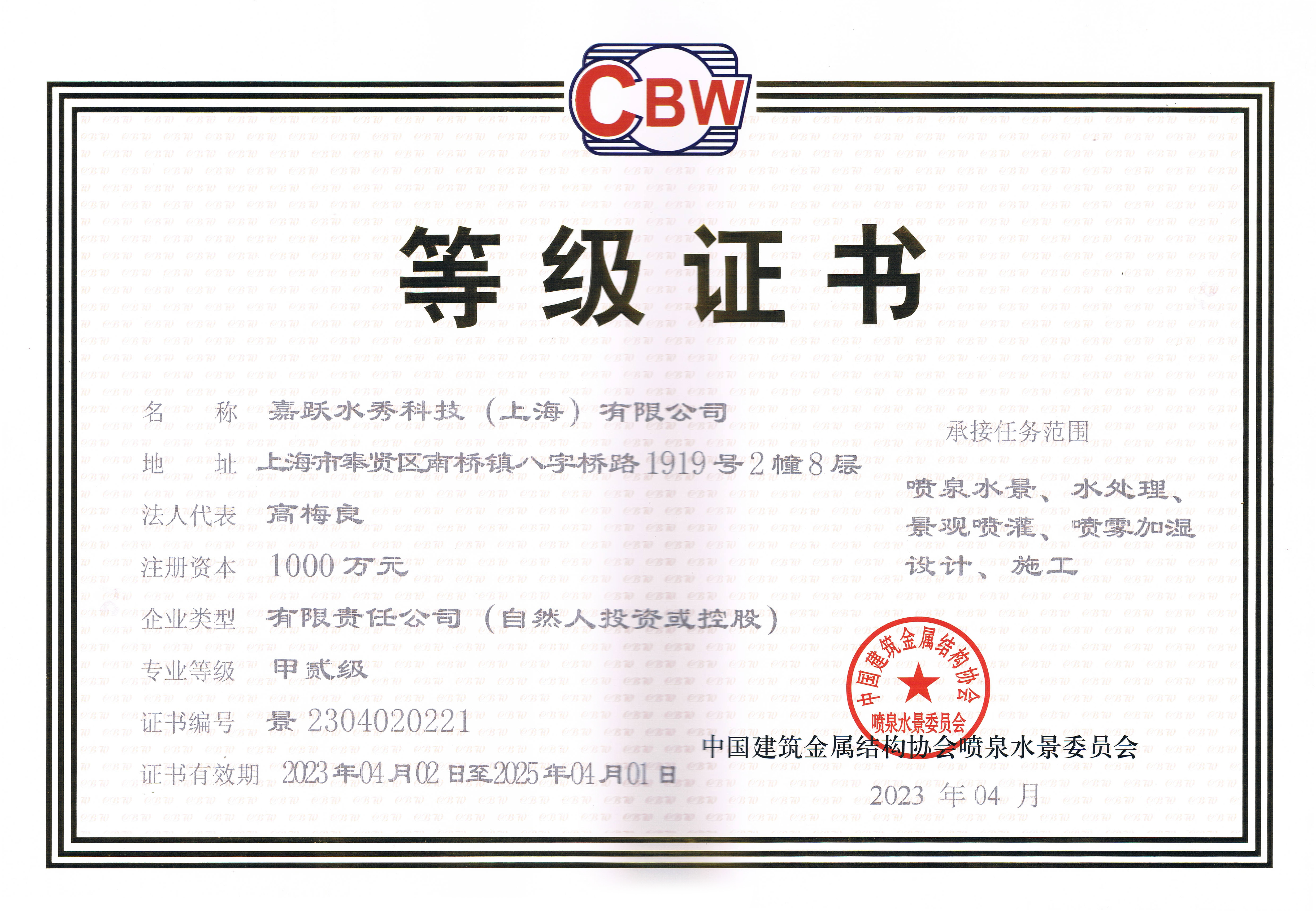 嘉跃水秀科技(上海)有限公司是一家专业致力于喷泉水景水秀的甲级资质企业,2023年被评定位上海市专精特新中小企业,具有国际水平的景观艺术和环境科技的设计与施工能力。公司成立于2007年,坐落在现代国际化大都市上海,靠近美丽的旅游胜地奉贤海湾城。